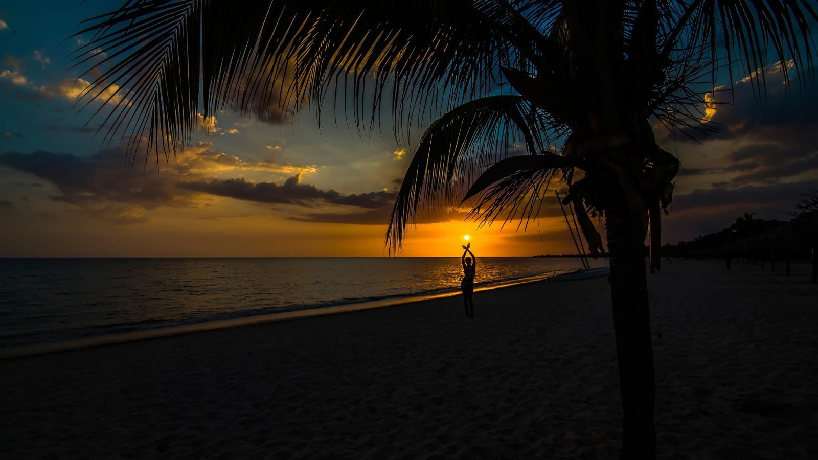Обои Закат солнца на тропическом пляже