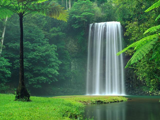 Обои Живописный водопад между зеленых деревьев