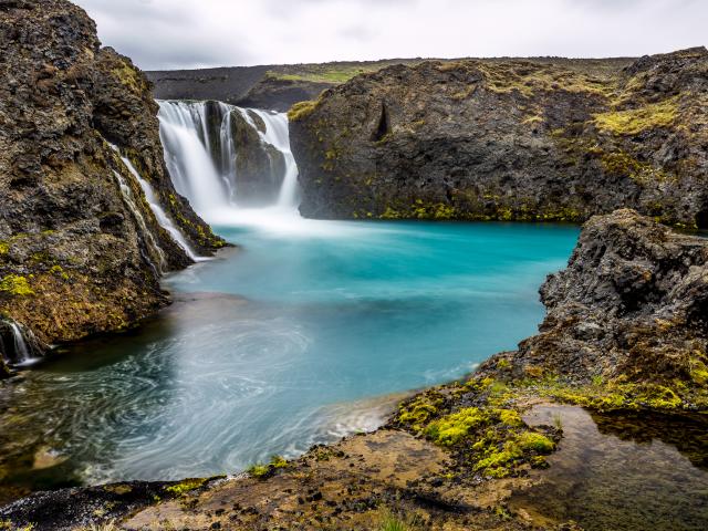 Обои Красивый водопад между скалистых берегов