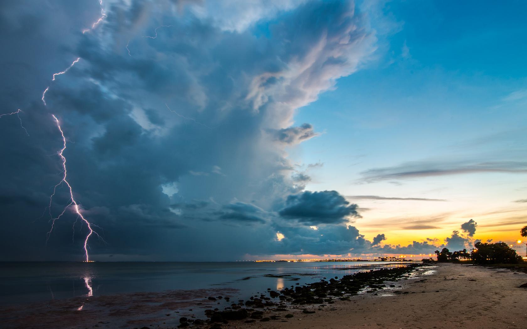 Обои Грозовые облака и молния над океаном
