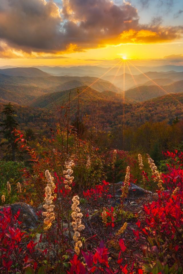 Обои Закат солнца в небе над горным пейзажем