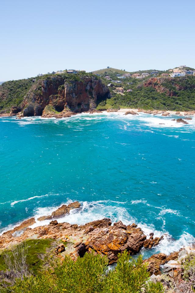 Обои Голубая вода и каменные скалы в заливе на побережье Африки