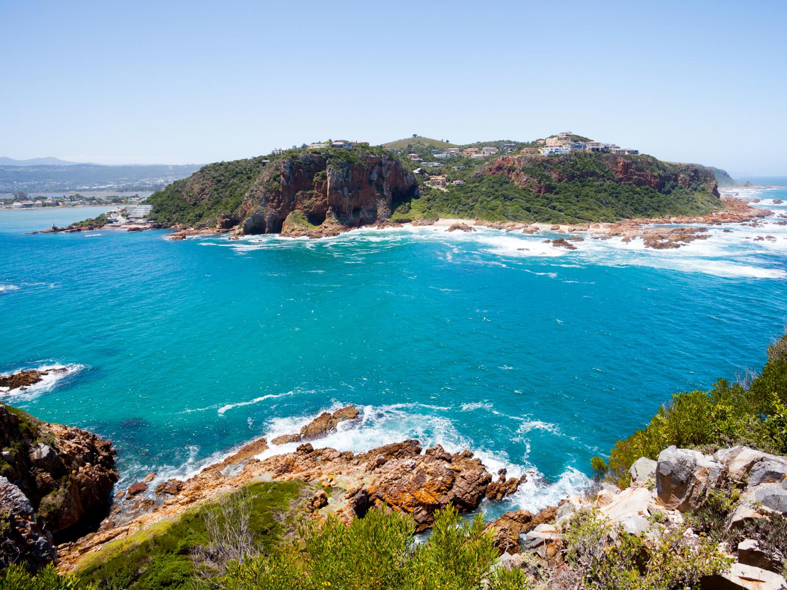 Обои Голубая вода и каменные скалы в заливе на побережье Африки