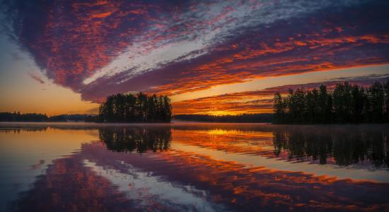 Обои Красивое оранжевое небо на закате отражается в воде