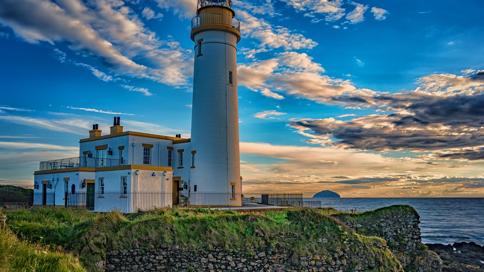 Обои Маяк на побережье под красивым голубым небом
