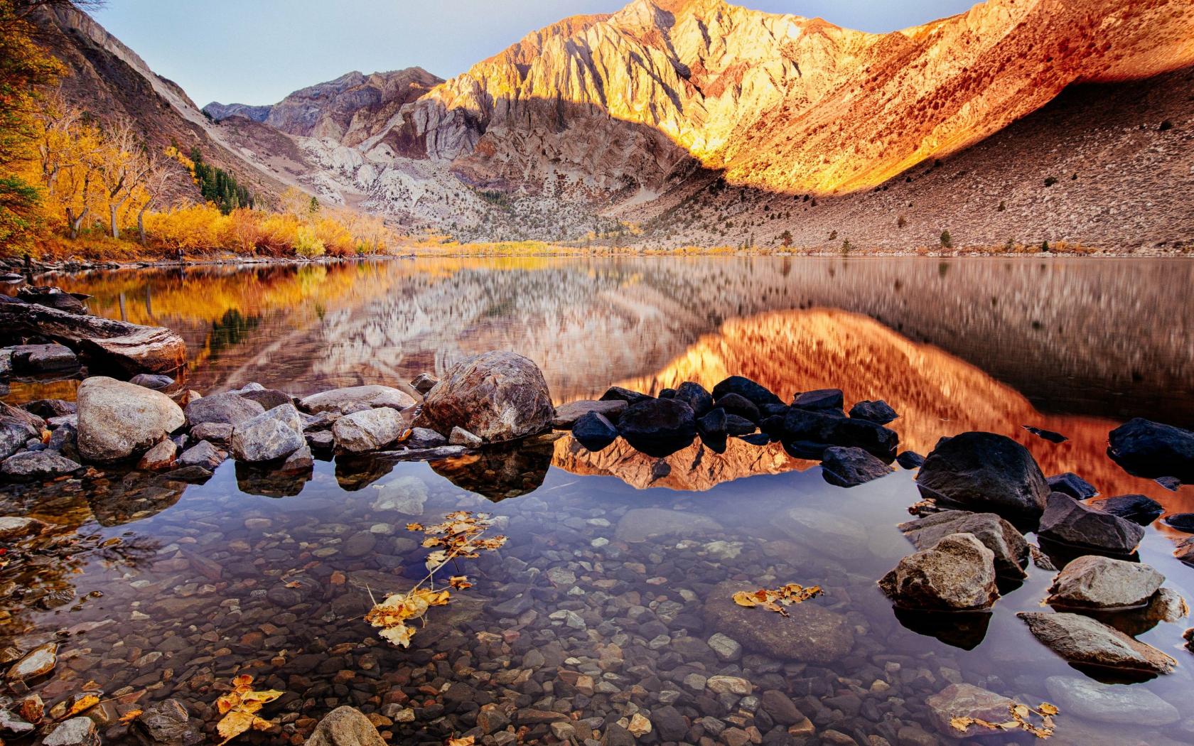 Обои Гора Моррисон отражается в озере Конвикт осенью