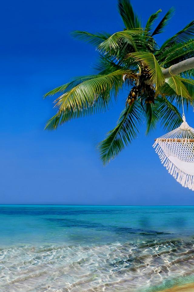 Обои Белый гамак на пальме над чистым океаном