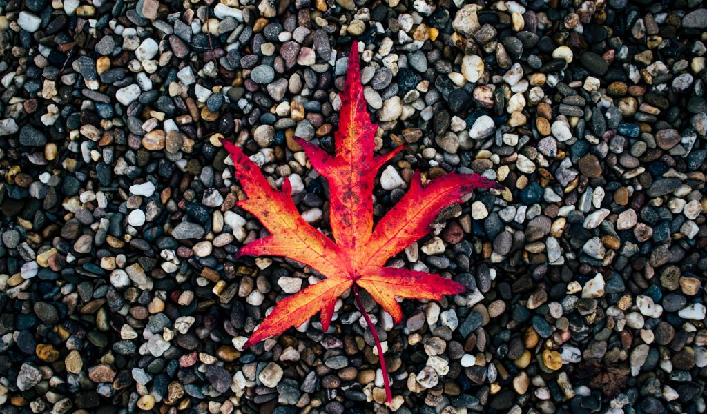 Обои Опавший желтый лист лежит на мелких камнях