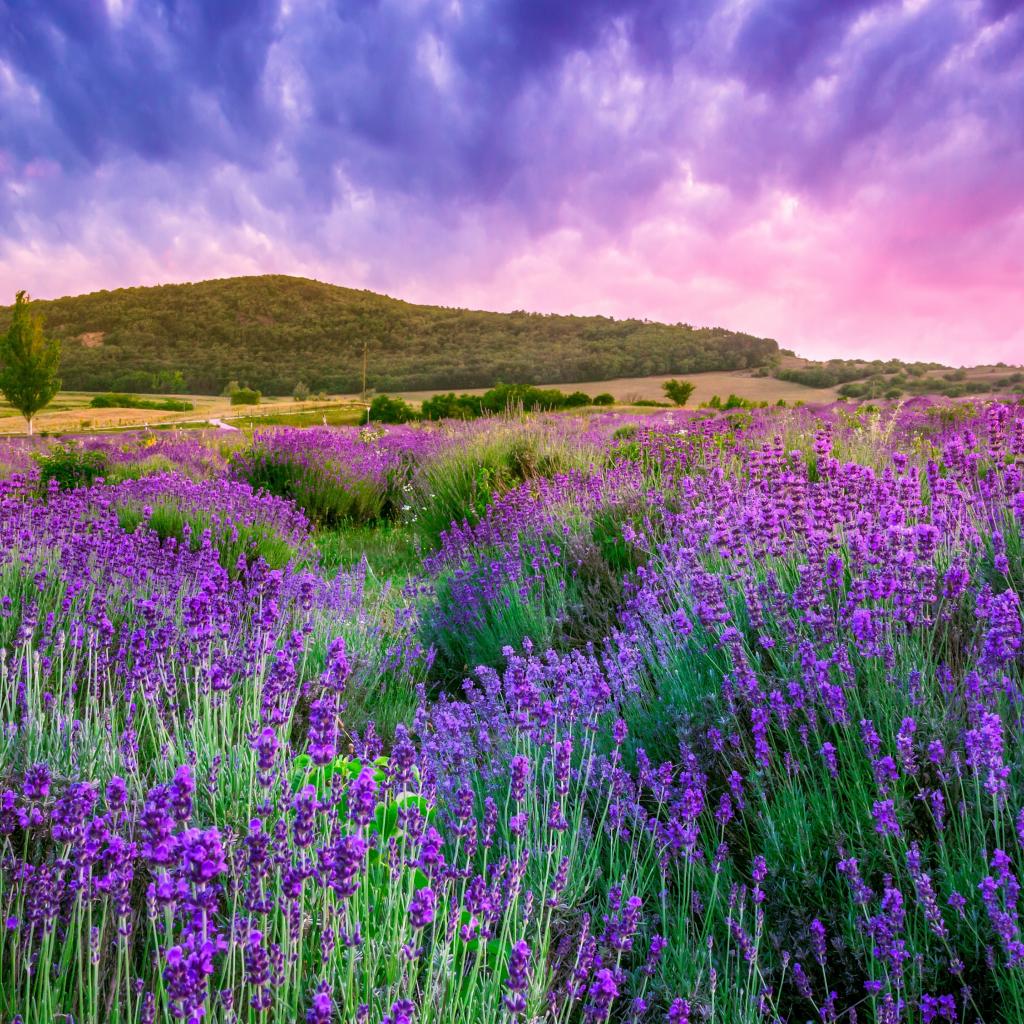 Обои Лавандовые поля Прованса под красивым небом, Франция