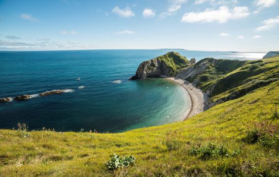 Обои Вид на морской горизонт со скалы покрытой травой