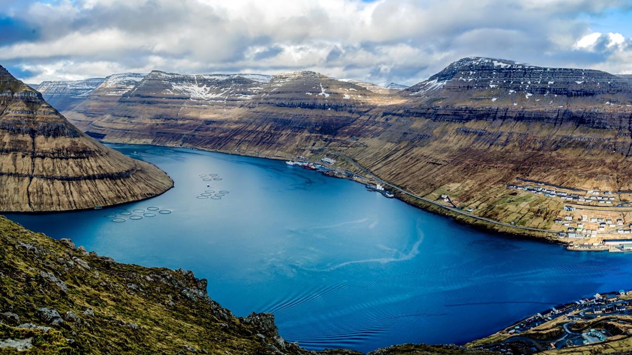 Обои Озеро между гор под красивым небом, Фарерские острова