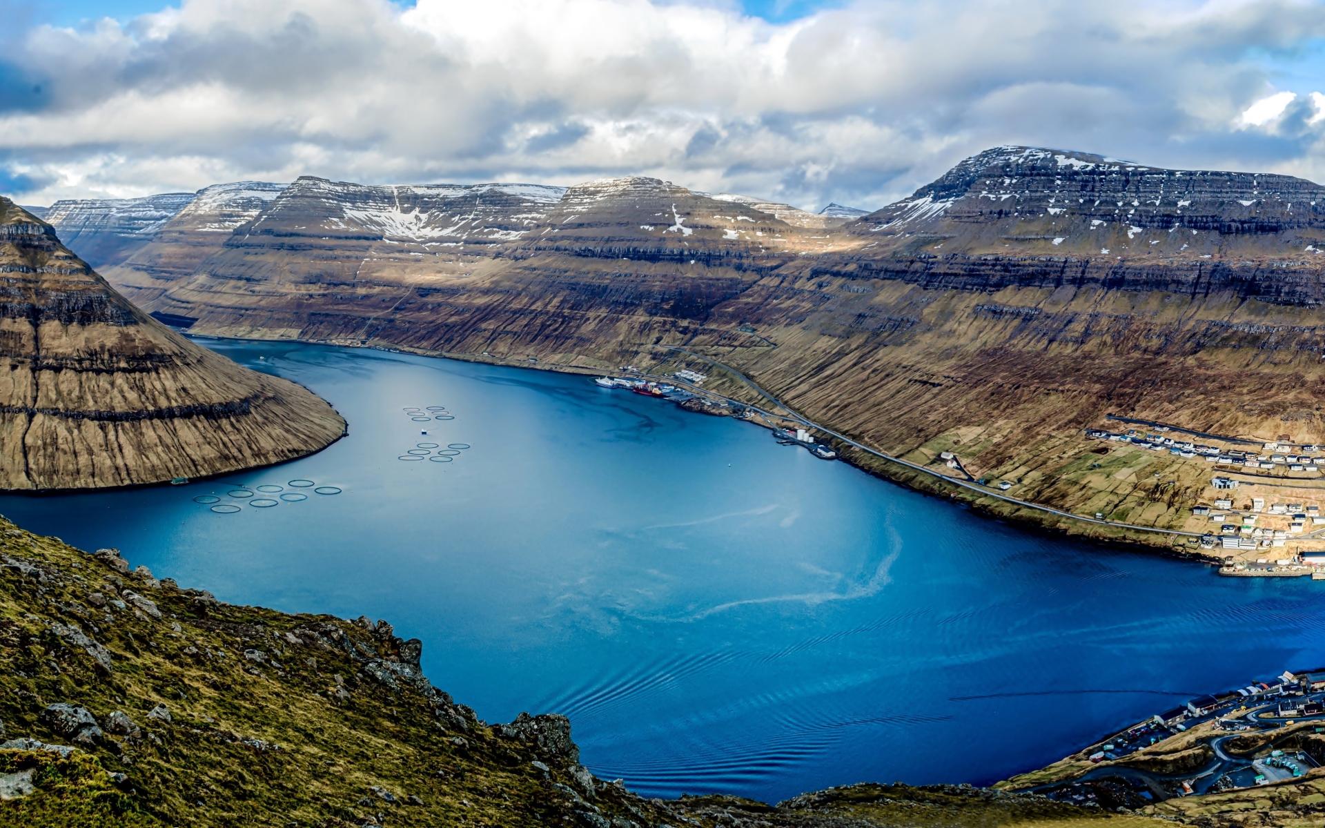 Обои Озеро между гор под красивым небом, Фарерские острова