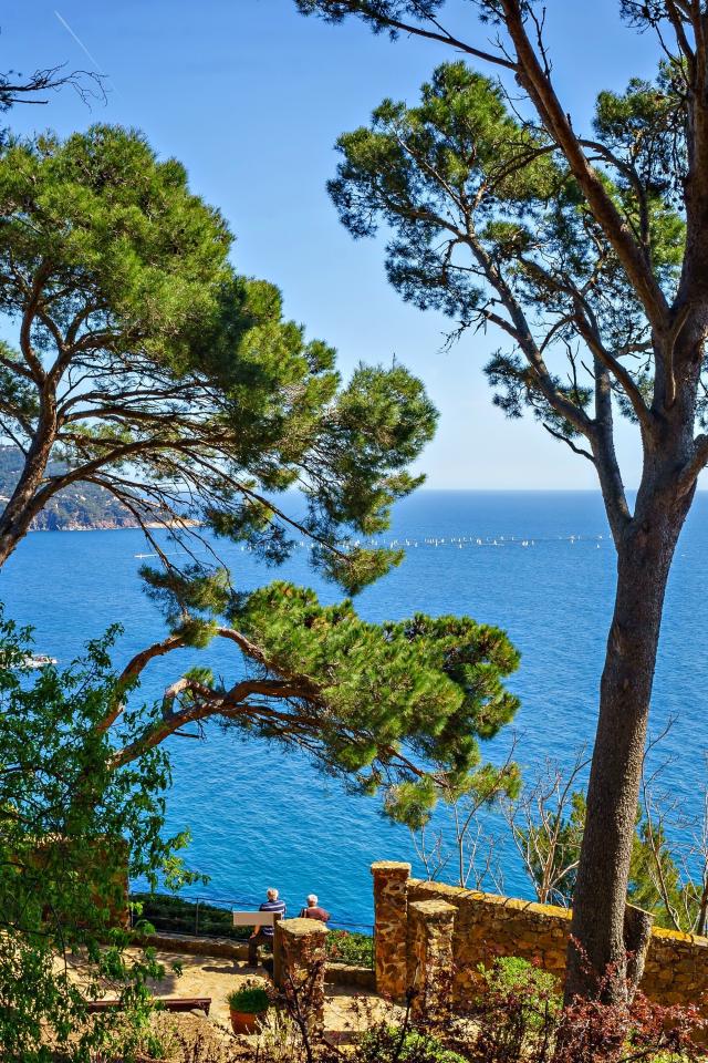 Обои Высокие деревья на побережье на фоне моря, Испания
