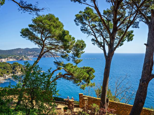 Обои Высокие деревья на побережье на фоне моря, Испания