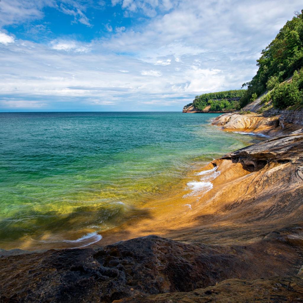 Обои Скалистый берег у голубой воды моря на фоне неба