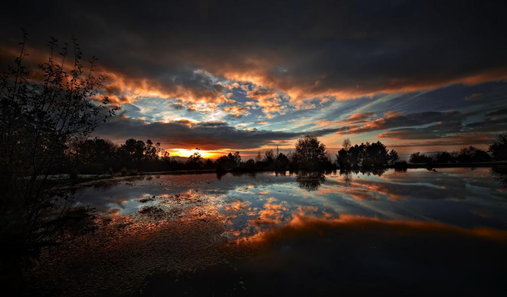 Обои Вечернее небо отражается в воде на закате