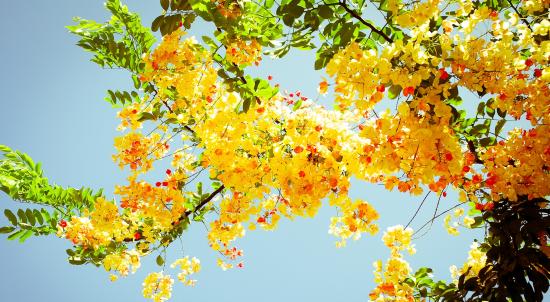 Обои Цветущая ветка акации под голубым небом