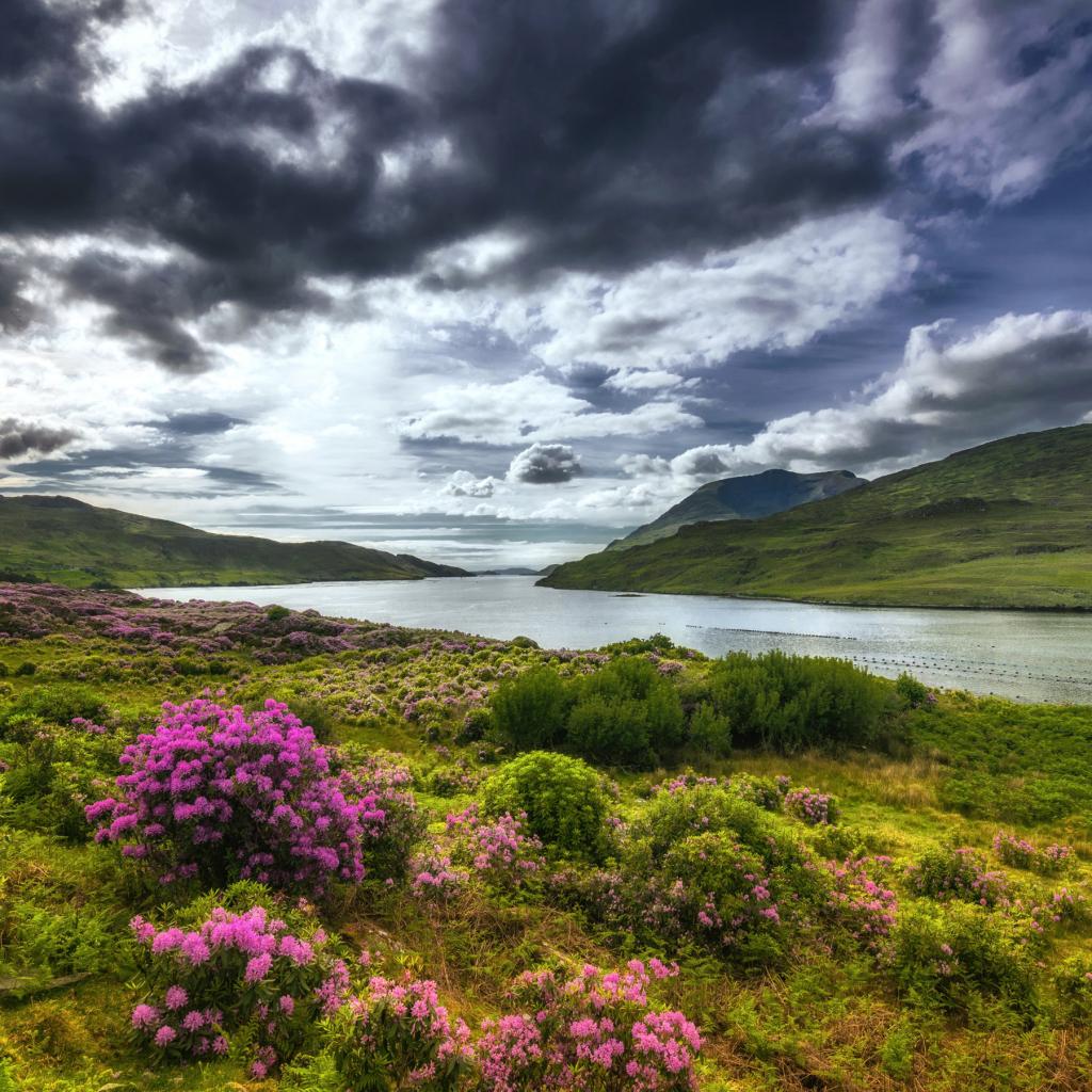 Обои Река с зелеными берегами под красивым небом, Ирландия