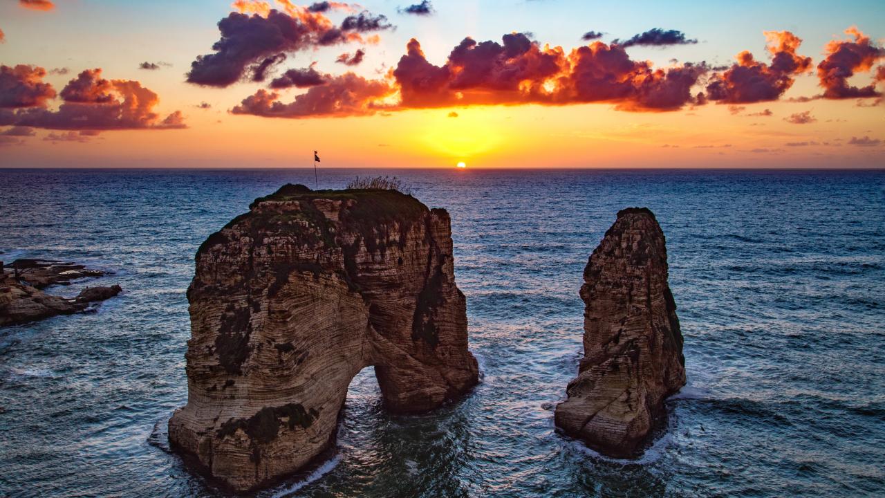Обои Арка скала в море на закате солнца