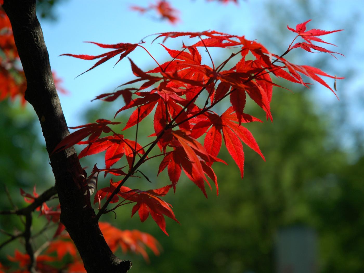 Обои Ветка с красными листьями на дереве