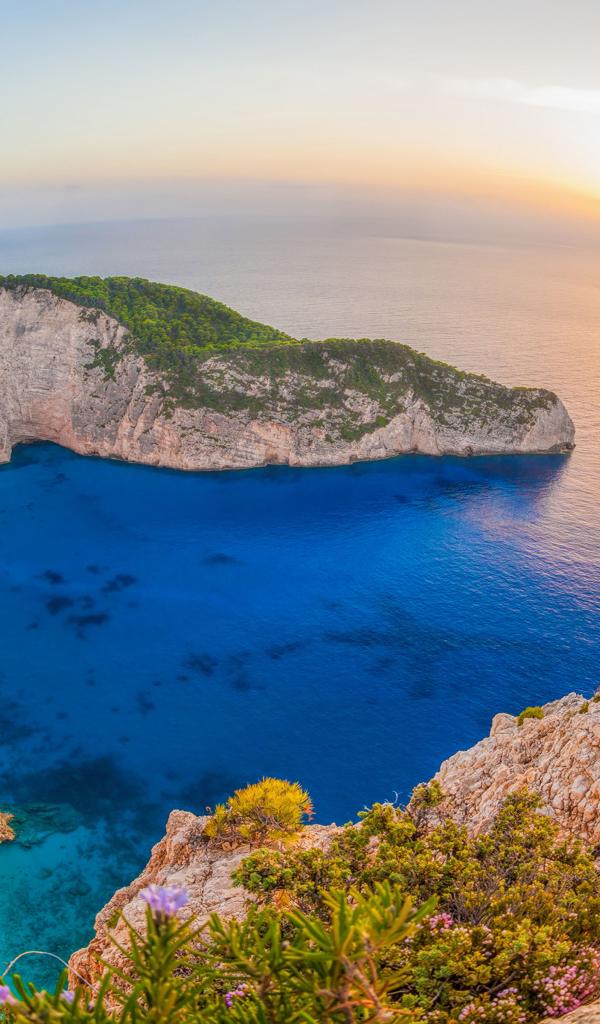 Обои Пляж Навагио на закате солнца, Греция