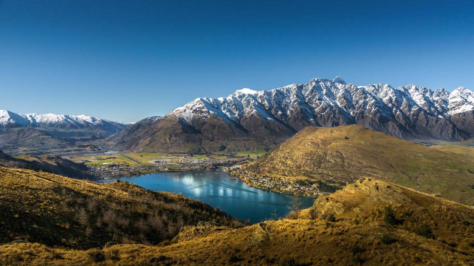Обои Красивый вид на вершины заснеженных гор и реку