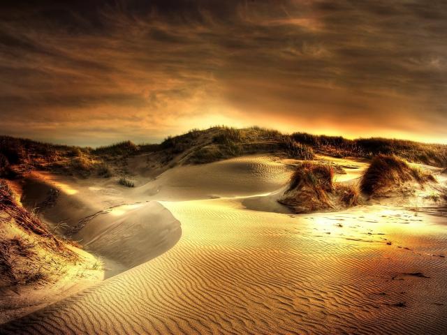 Обои Волнистый песок под красивым небом на закате