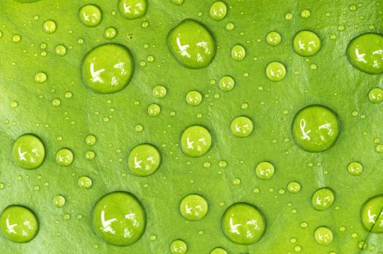 Обои Капли на зеленом листе крупным планом