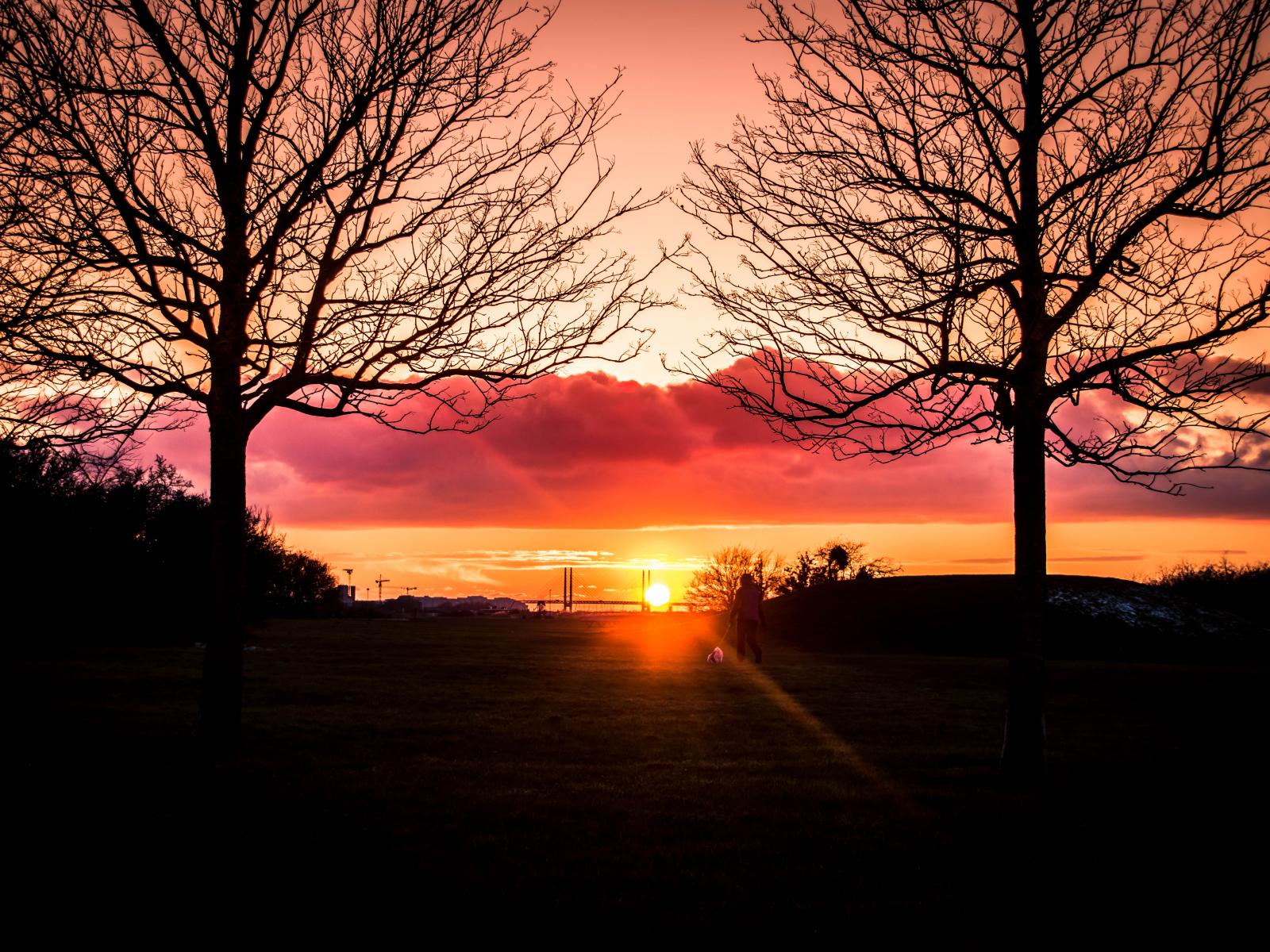 Обои Силуэты деревьев на фоне яркого солнца
