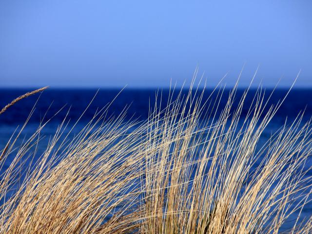 Обои Сухая трава на фоне голубого горизонта