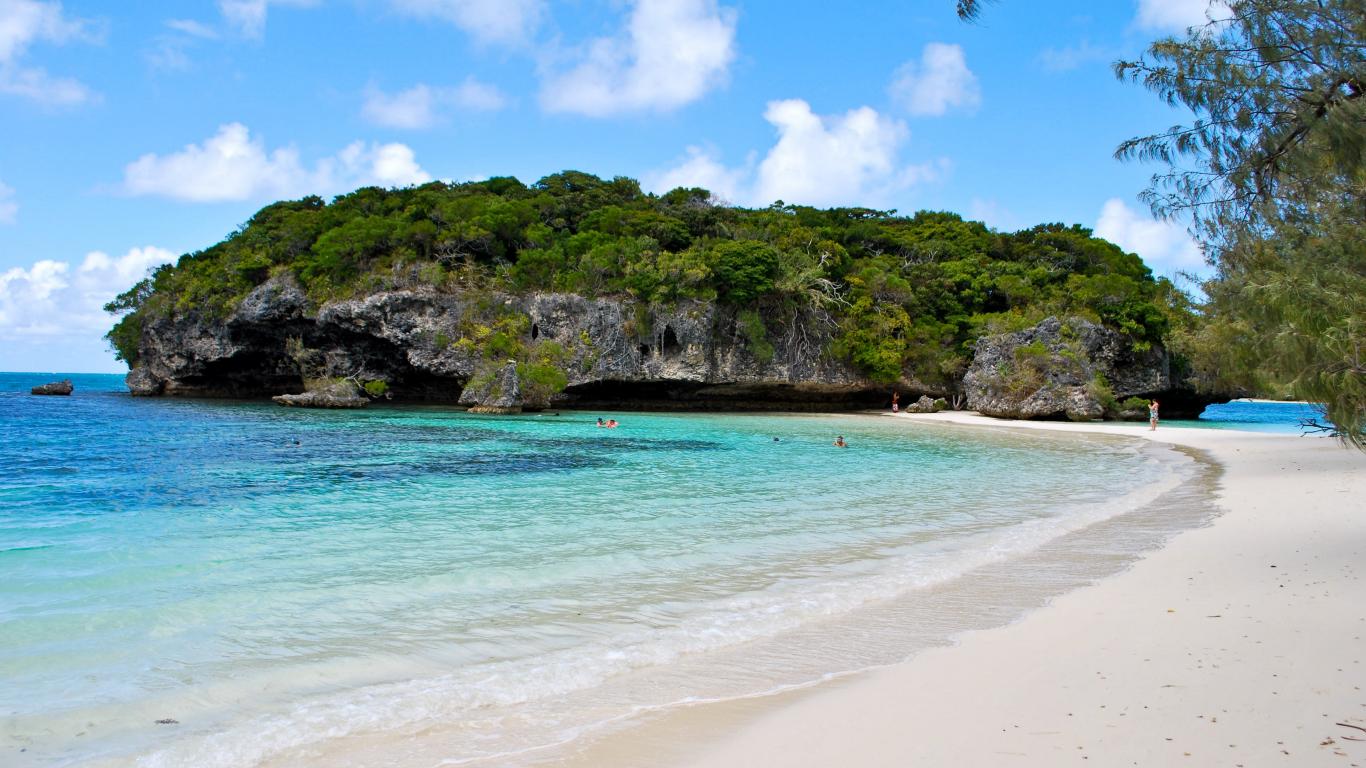 Обои Покрытая зеленью сказала около пляжа на морском берегу