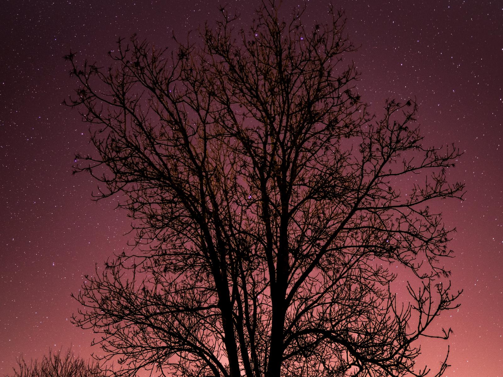 Обои Дерево без листьев на фоне звездного неба