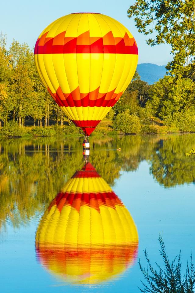 Обои Большой оранжевый воздушный шар в небе над спокойной водой