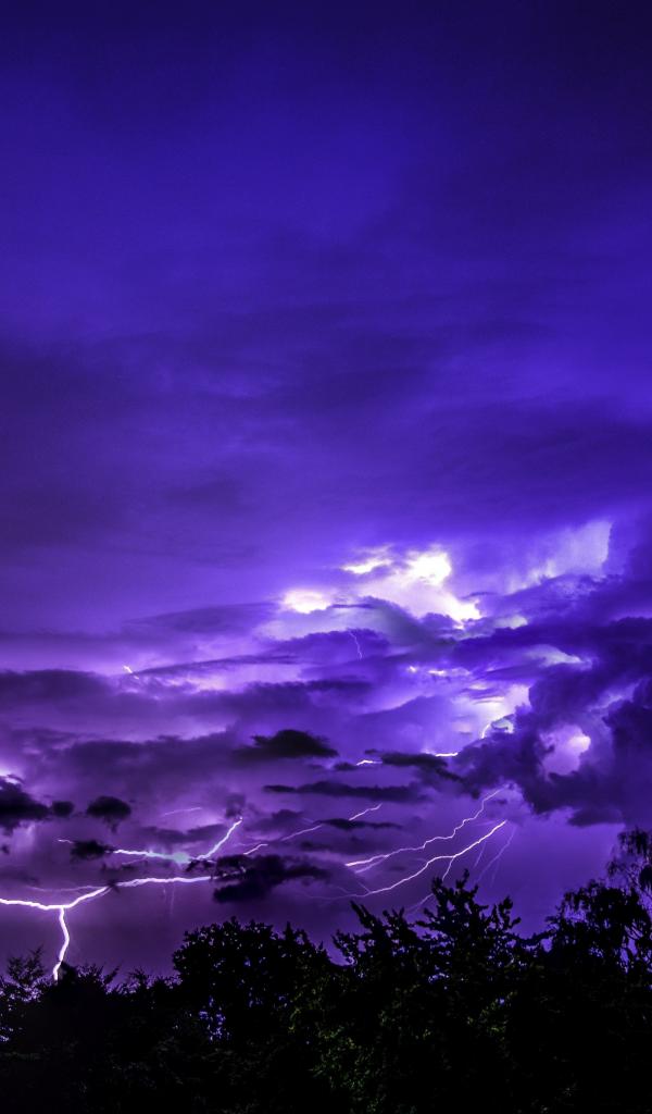 Обои Белая молния в красивом фиолетовом небе