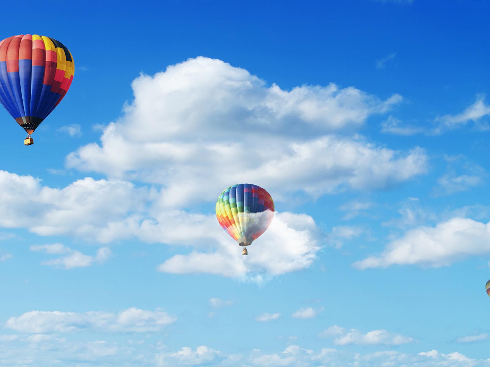 Обои Воздушные шары в голубом небе с белыми облаками