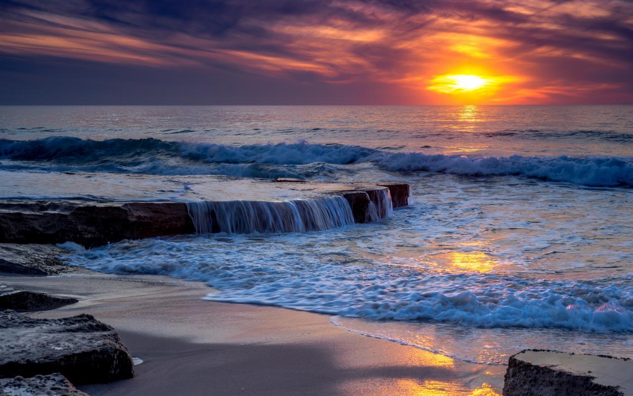 Обои Бушующие волны океана на закате