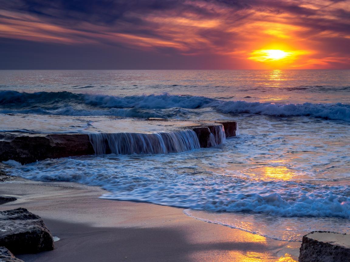 Обои Бушующие волны океана на закате
