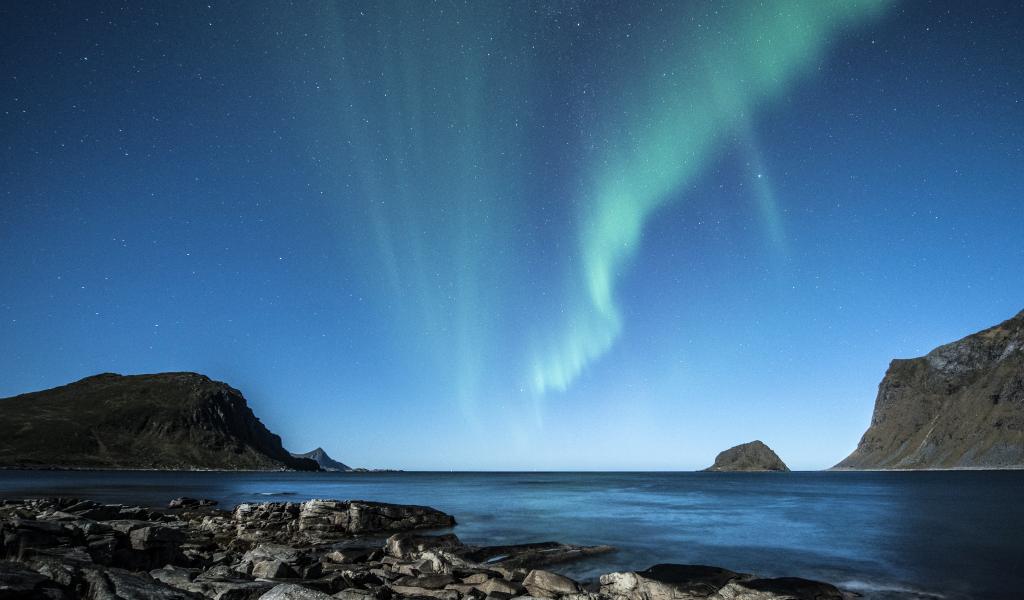 Обои Полярное сияние над заливом