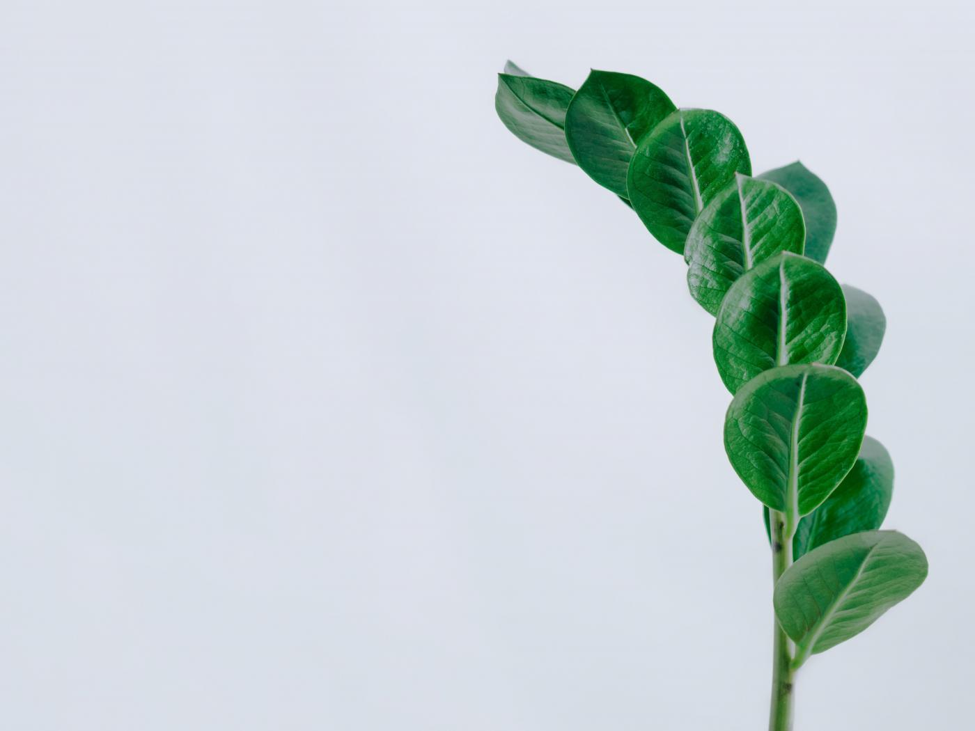 Обои Зеленый лист на сером фоне крупным планом