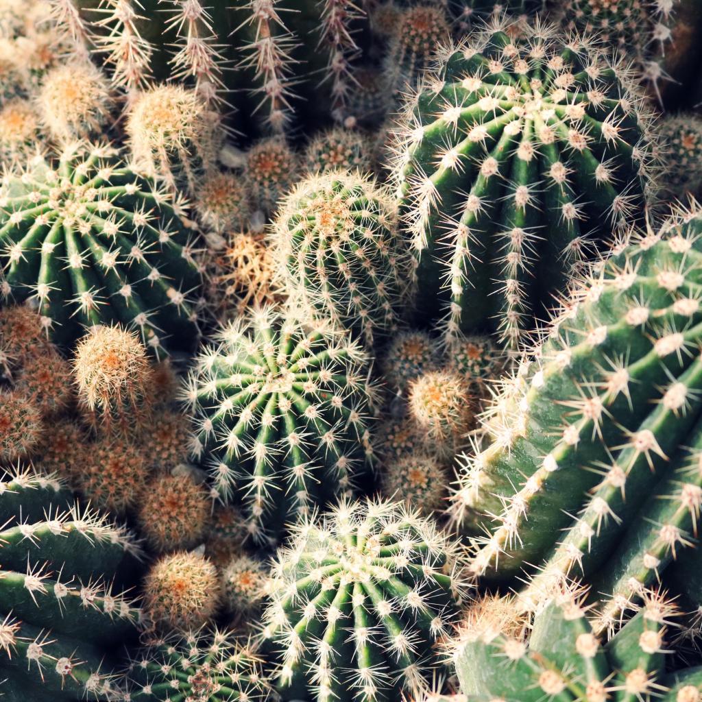Обои Колючие кактусы на клумбе крупным планом