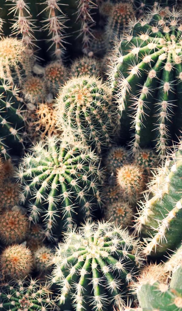 Обои Колючие кактусы на клумбе крупным планом