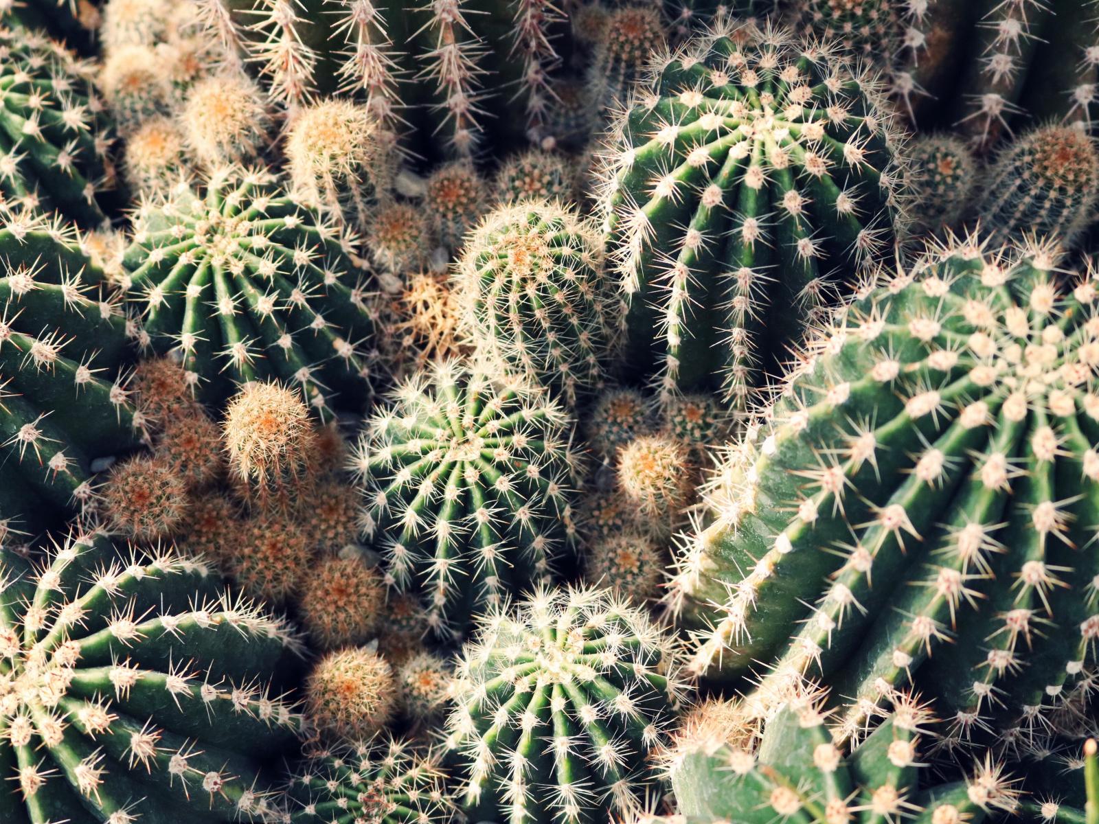 Обои Колючие кактусы на клумбе крупным планом