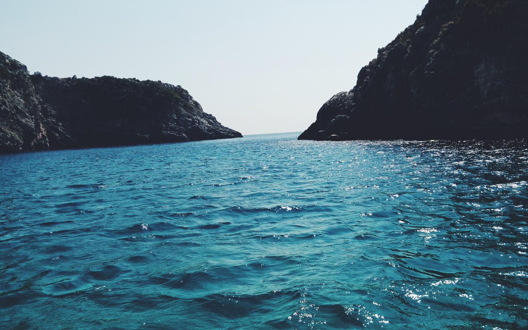 Обои Голубая вода в заливе между гор