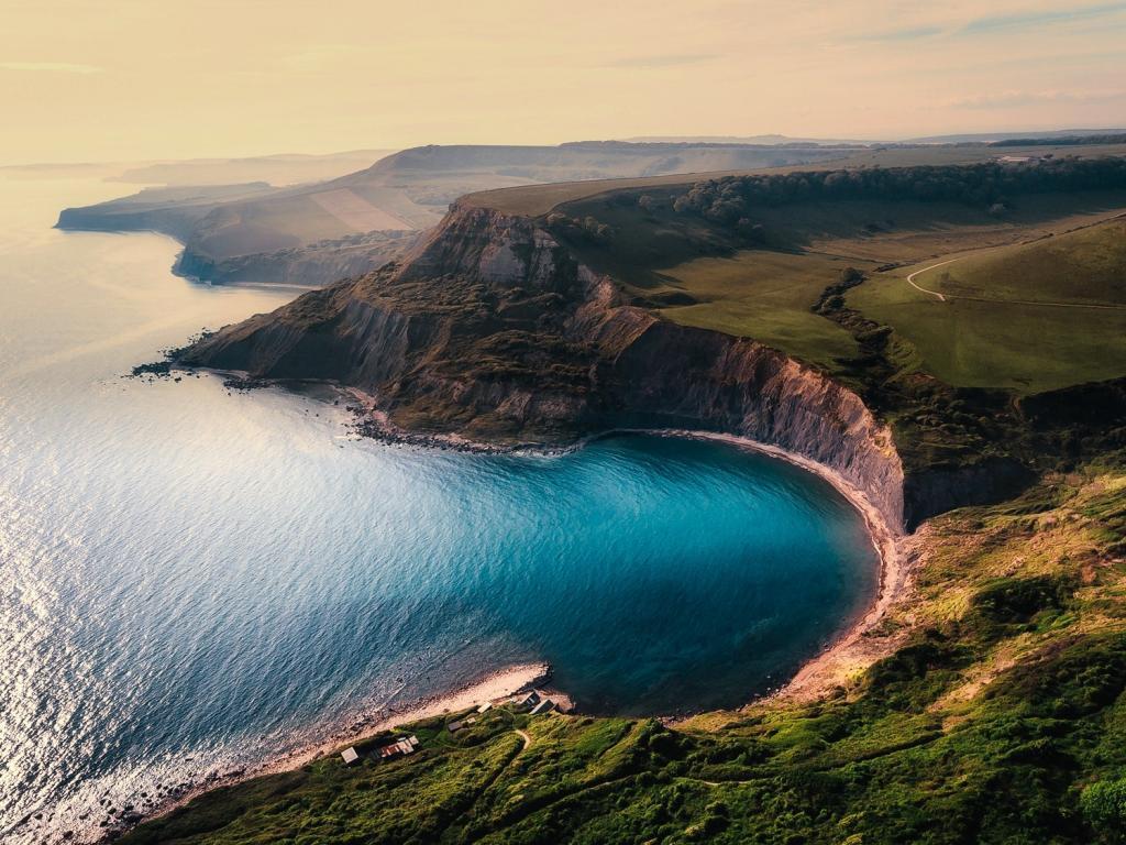 Обои Голубая вода в заливе у гор