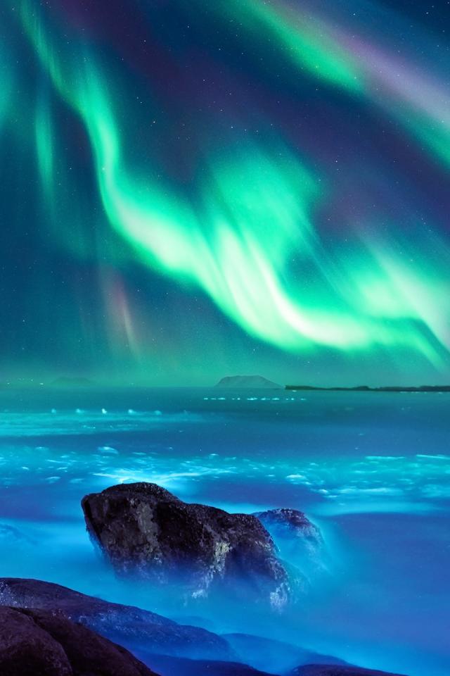 Обои Красивое полярное сияние в ночном небе, Исландия