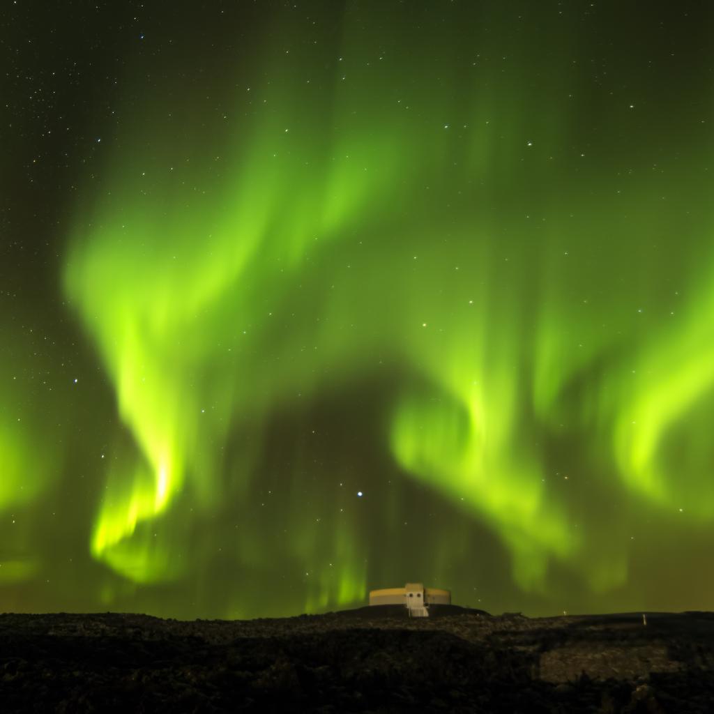 Обои Красивое зеленое северное сияние в звездном ночном небе