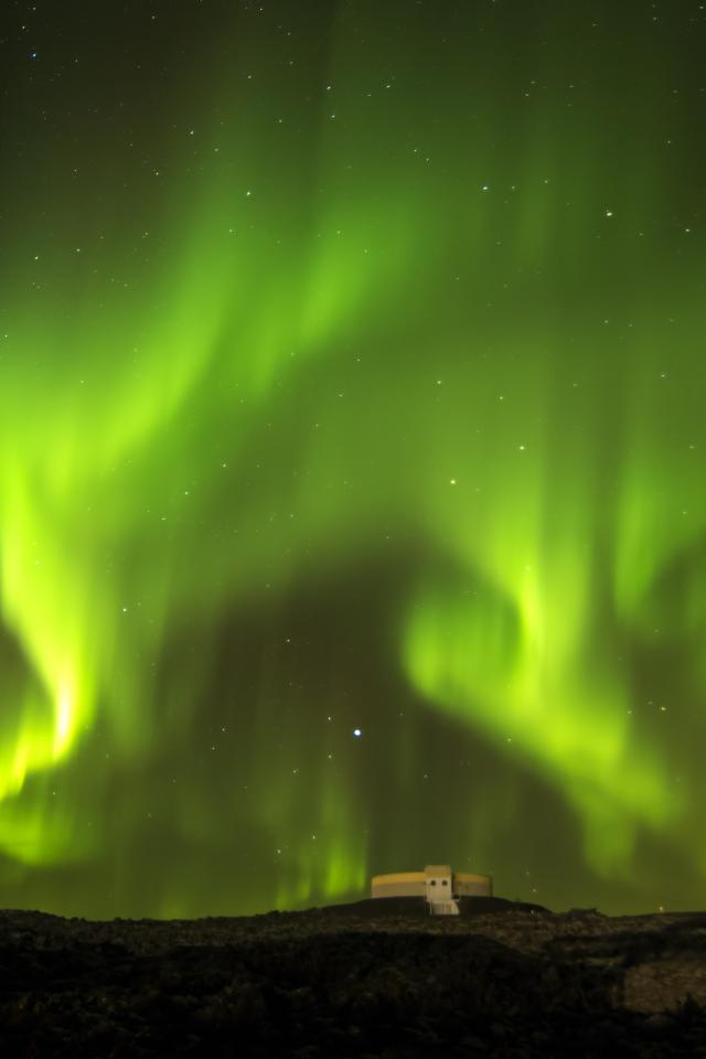 Обои Красивое зеленое северное сияние в звездном ночном небе