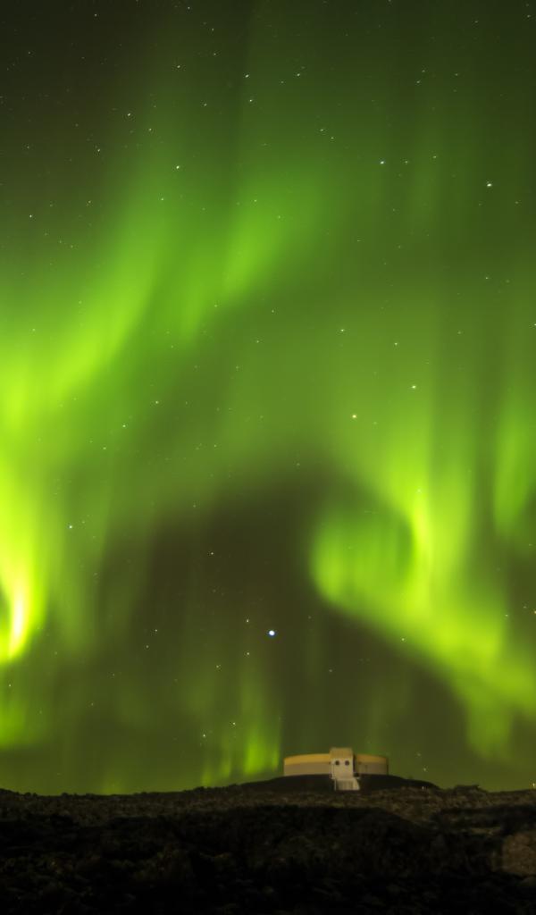 Обои Красивое зеленое северное сияние в звездном ночном небе