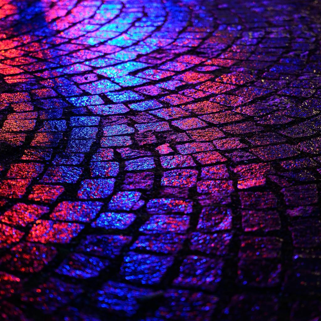 Обои Мокрая брусчатка в неоновом свете