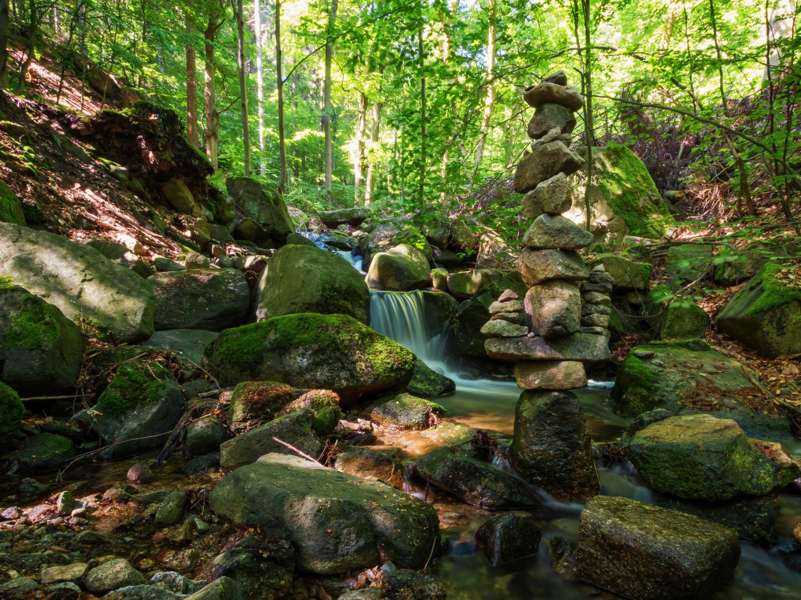Обои Вода стекает по покрытых мхом камням